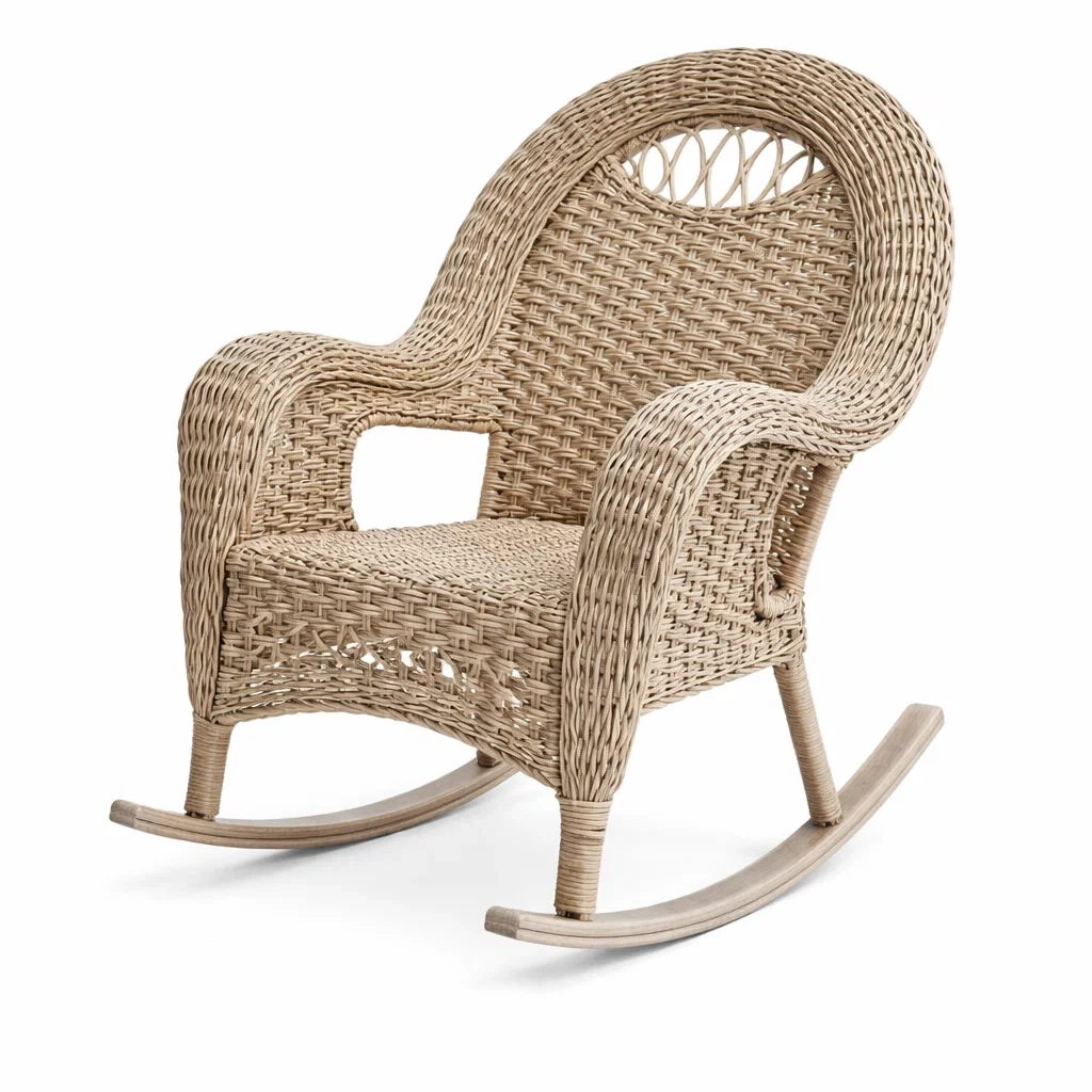 Fauteuil à bascule en bambou et toile de coton blanche 70 x 60 x 80 cm