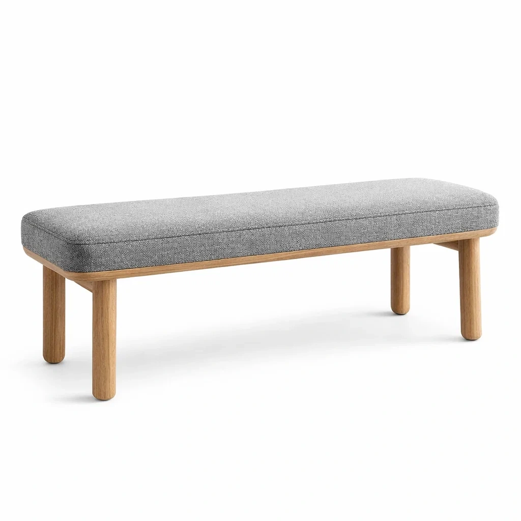 Le banc est fabriqué en bois de chêne avec un rembourrage en tissu polyester gris. Ce banc offre un confort maximal avec sa structure robuste soutenue par quatre pieds solides. Dimensions : 120 cm de longueur, 35 cm de largeur et 45 cm de hauteur. Capacité de charge jusqu'à 150 kg.